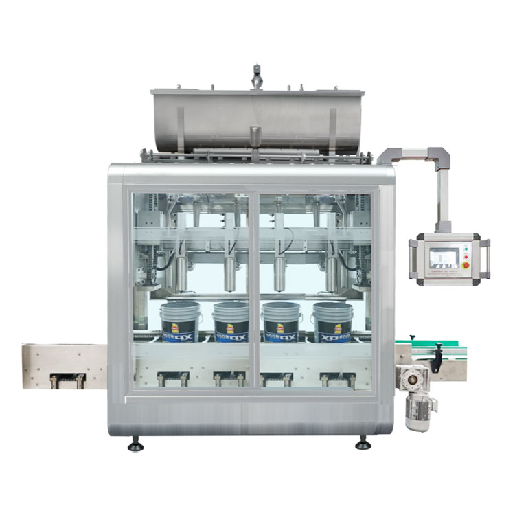Aquesta màquina és adequada per a l'ompliment de fluids d'1 kg a 20 kg i completa automàticament una sèrie d'operacions com ara comptar en ampolla, omplir pes i transportar el barril. Especialment indicada per a l'ompliment quantitatiu d'oli lubricant, agent aquós, pintura, és la màquina d'envasament ideal a les indústries petroquímica, pintura, medicina, cosmètica i química fina.
